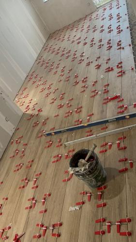- Alicatado de suelos (solado de suelos): Se alisa y limpia el suelo, y se colocan las baldosas.
