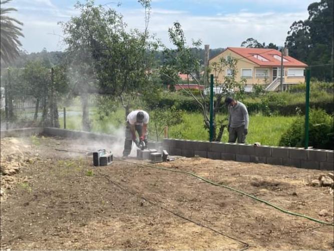 Son varios trabajos a realizar en una finca de o carballo (oleiros) * rellenar con hormigón bajo una caseta de obra * demolición de un muro entre fincas para sustituir por otro tipo de cierre (verja metálica) * reparación de otro muro de bloque.