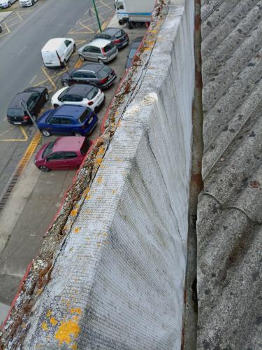 Reparar en comunidad de 5 alturas El hueco de la fachada en el 1º piso El voladizo del techo de la planta baja El voladizo del techo del 5º piso Los recercados y vierteaguas de la fachada Reparar la grieta en la jamba de la ventana de la cocina del 5º piso