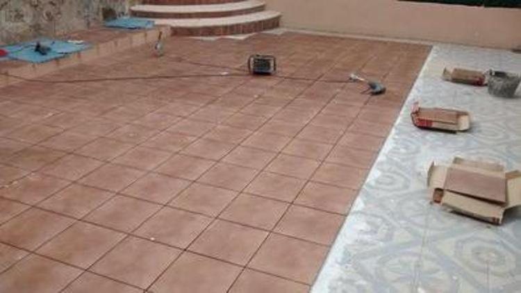 Albañiles para trabajo en suelos, alicatados en vivienda unifamiliar