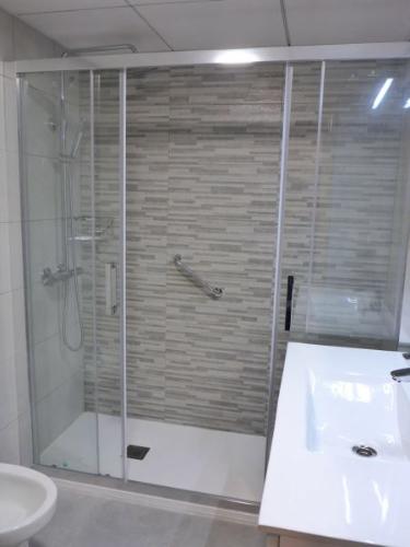 Reforma de cuarto de baño con cambio de bañera por plato de ducha, anulación de bidé, griferia de ducha empotrada, suelo, alicatado de paredes, cerramiento de viga para dejar una repisa para los geles, etc... Medidas