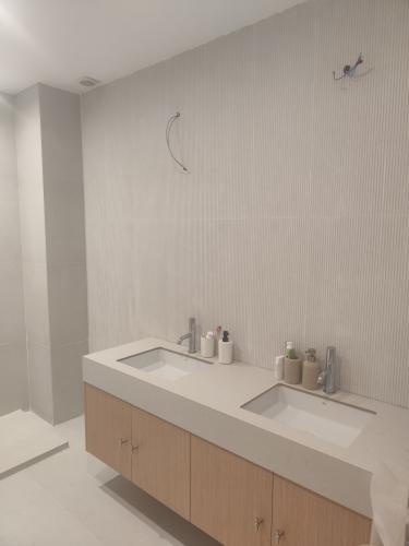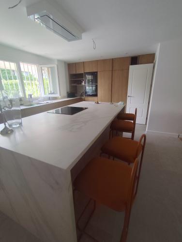 Necesitamos ampliar una cocina, para ello es necesario derribar parte de muro donde ahora hay una ventana y una puerta y ampliar paredes y techo. Reforma integral de dos baños pequeños. Hacer dos paredes con una puerta para hacer una entrada en el porche de la casa.