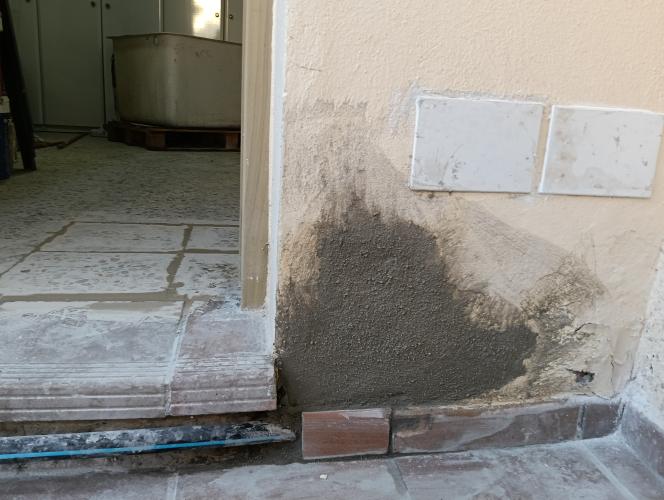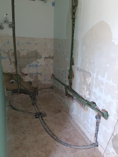 • terminación en la pared y el techo (tiraron ya un tabique) • arreglar un pequeño hoyo en el techo falso • poner una pequeña linea de azulejos en el suelo donde antes estaba el tabique