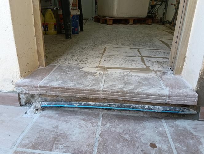 Abría que levantar el suelo, reparar y poner la tela y poner losetas de terraza que proporciono yo. He estado tomando información y creo que la tela asfáltica es lo mejor, pero si el profesional cree que es mejor otra cosa estoy abierto a ello.