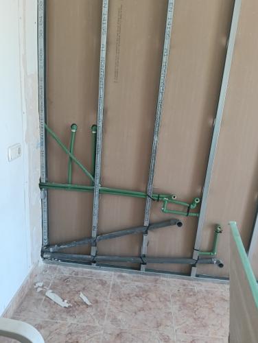 Hemos comprado todo el material. Nos ha fallado el antiguo albañil . Buscamos a un albañil sea formal. Nos alicate dos testeros uno el que está junto a la bañera y el otro testero justo el que hace esquina con el pilar.
