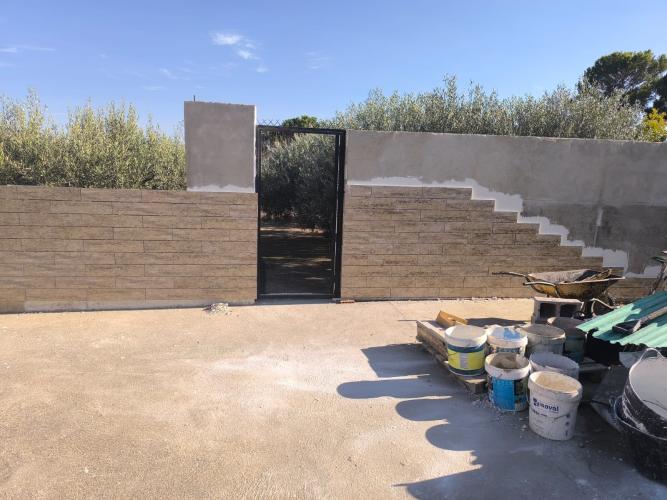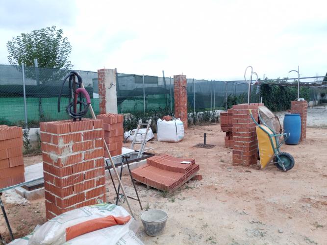 Los trabajos a realizar son: Desescombrar un muro de 65 m2 y rehacerlo de nuevo Hacer una zanja para pasar una tuberia de pvc (20ml) Cambiar 3 placas de uralita en un techado bajo Repasar las tejas defectuosas del tejado