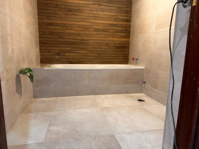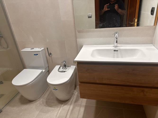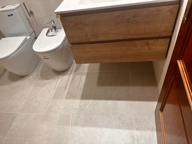 En el cuarto de baño hay alguna baldosa , situada justo detrás del lavabo, que se le ve que està suelta y la està sujetando el lavabo del baño. Para ver el alcance total del trabajo, habrà que desmontar el lavabo y ver las baldosas que hay huecas