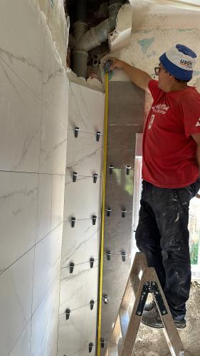 Albañil para reparar baldosas, revestimientos, paredes o techos en piso