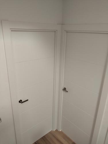 Todas las puertas macizas lacadas en blanco con 4 líneas horizontales. 2 puertas correderas de 70x211 (para instalar en armazón metálico) 1 puerta blindada de 82x211 interior lacada en blanco exterior sapeli con cerradura de 9 puntos y antipalanca. 3 puertas de 70 x211 y a puerta de 120x211 y una puerta de 57x211 dar precio con instalación e iva. Somos empresa de reformas y la obra estaría en...