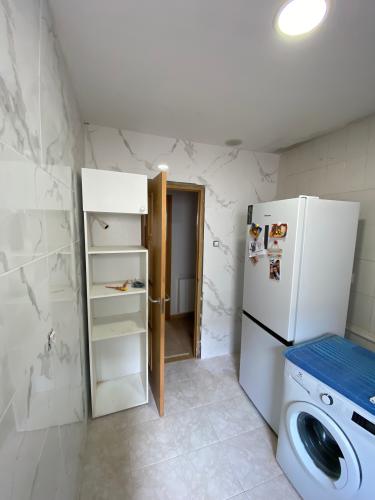 Se trata de cambiar bañera por plato de ducha , eliminar bide para dejar un lateral del baño con el acceso libre. Habrá que reubicar la puerta del baño y ponerla de corredera oculta en el muro. En el suelo tenemos láminas de vinilico y la idea es volver a poner el mismo material. Aprovecharemos la obra para actualizar la ventana, que está ubicada en la zona de bañera