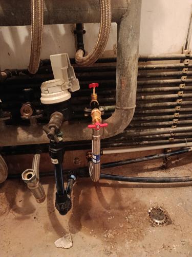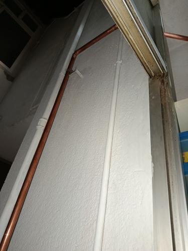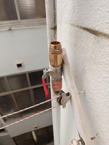 Piso de 100 mts, con dos lavabos. Caldera situada en el interior de una galería cerrada, a metro y medio de salida al exterior, (hay que hacer agujero al exterior). Desagüe cercano, a metro y medio máximo, creo que es de plomo.