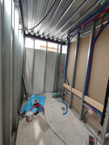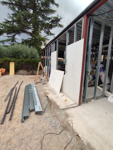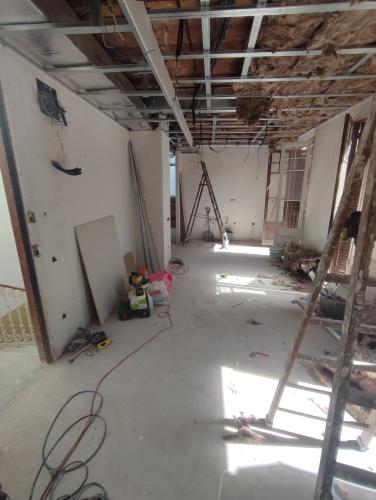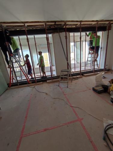 Se trata de instalar una estufa de leña (tubos), hay que cambiar parte del falso techo por pladur ignífugo, perforar falso techo y sacar conducción por terrado (el orificio del terrado está hecho). Altura de suelo a terrado unos 4, 5 m, acceso fácil por escalera al terrado. Estufa rinconera. Gracias. Lucía.