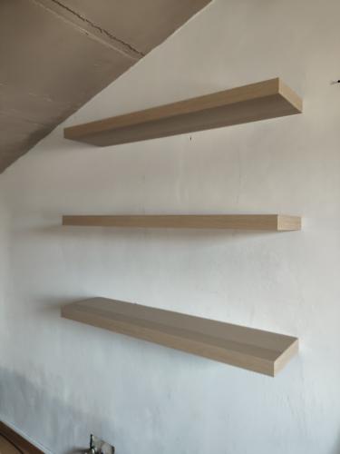 He hecho cortar tablas de aglomerado en maderas alcaide (el pinillo) y necesito montarla. 3 piezas: - 1 pieza: dos tablas verticales y 6 baldas a montar a montar juntas (altura 86, largo 102, profundidad 28). No hace falta fijarla (va reposando en el suelo) - 2 piezas: estantes flotante de pared de forma rectangular x 2 (alt 36, largo 23, prof 15). Hara falta fijarla a la pared. Trabajo...