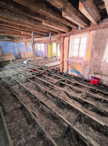 Hola a todos: Han fallecido mis padres, y me he quedado con un trastero pequeñito para convertirlo en un lugar donde ir y tener recuerdo de la vida con ellos. El trastero es pequeñito, igual tiene 4 metros cuadrados, pero si que era alto, por eso mi padre hizo un techo de madera utilizando 6 vigas de izda a derecha al que arriba le puso encima de las vigas unas maderas lisas que estan...