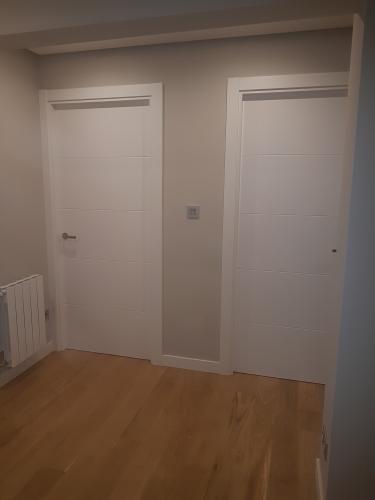 **-Puertas de traeros.-. Seis (6). Y colocacion de sus cerraduras.- -Manterner el marco , y su acoplamiento. -Puerta maciza.- Tipos a proponer.. -Dotadas de regilla de ventilacion. Retirada de la sustituida. No pintada , variante pintada en :rojo carruaje. **tres puertas de acceso al pasillo de trasteros.: Mayor robustez y cerradura de mayor seguridad. Con regillas...