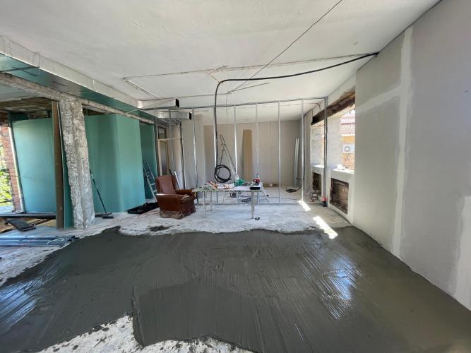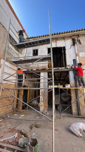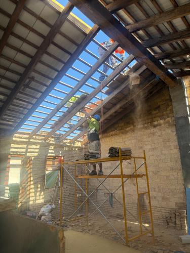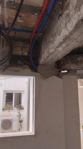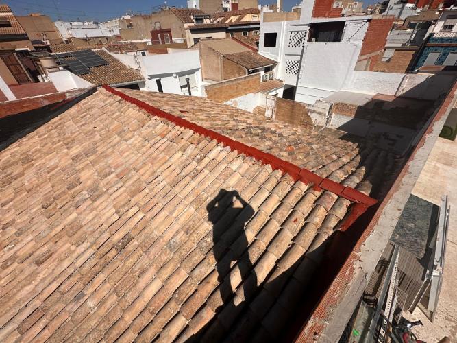 Es una casa "algo vieja" (de alrededor de 1960) pareada, es decir, tiene otras casas a un lado y a otro pared con pared. En la fachada da a la calle, y la parte trasera a otra calle. Tiene patio que da a la parte trasera. Creo que las vigas (del techo) son de madera (creo que le llaman cuchillos a ese tipo?) Una de las opciones que me gustaría valorar, es poner unas nuevas de obra o acero...