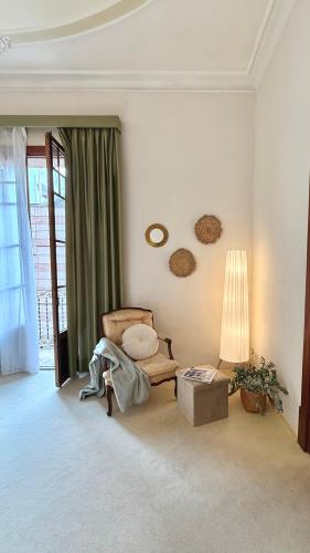 Es un piso de hace 37 años , en el. Salon hay una estantería de pladur y chimenea. Me gustaría darle un toque clásico, moderno y atemporal, con colores claros.