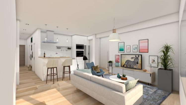 Se trata decoración de salón comedor, dos habitaciones e iluminación. Piso de obra nueva.