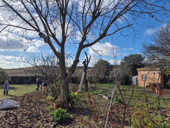 Es un chalet que estamos comprando, pero tiene mucho tiempo deshabitado. Hay varias zonas de jardín, una palmera y varios árboles frutales que conservar pero ante todo desbrozar, podar y poner a punto para decidir qué plantar. Muchas macetas para habilitar con tierra nueva y poder sembrar en ellas. Si todo va como pensamos, podríamos ya comenzar a trabajar allí la semana del 14 o la del 21 de...