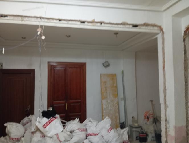 Son unos 2 metros cuadrados de escayola y la pintura serian unos 20 metros cuadrados. Y si la tarea es buena, tengo intención de hacer otra reforma similar, pero de mayor tamaño. Si cumple bien, habrá mas trabajo