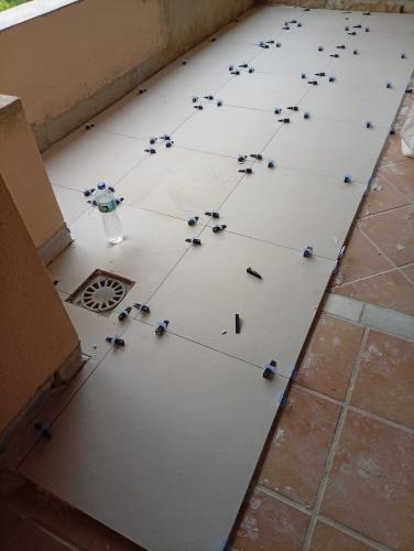 Terraza 5 metros cuadrados , se ha levantado dos losas por la calor y filtra un poco al baño que se encuentra debajo, necesitaria impemeabilizarla y volver a poner el suelo. La vivienda se encuentra en campanillas, málaga.