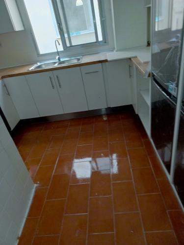 Hay moho creo que por condensación ya que la inquilina era muy friolera y tenía la calefacción muy alta puesta, deduzco que no debía ventilar mucho. El moho se extiende por las esquinas derechas de la pared de la ventana de dos habitaciones, en una de ellas hasta el techo