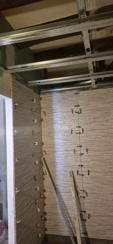 Hola, tengo que levantar un tabiqué donde se pueda poner puerta corredera para crear una habitación,. La medida del gancho del tabique debe ser de 197cm por el alto del techo 260cm aprox, tabiqué preparado para puerta corredera