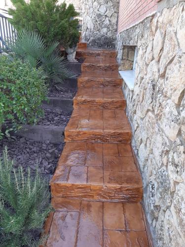 Mis vecinos y yo queremos construir un muro y quitar una valla metálica con enredadera que separa nuestras viviendas entre las dos rampas de bajada al garaje. Es un muro que seguiría la inclinación de la propia rampa, con el ladrillo de la casa, que es un poco brillante (naranja). La medida es alrededor de 2 metros y pico. Gracias