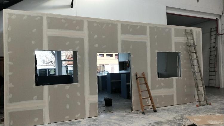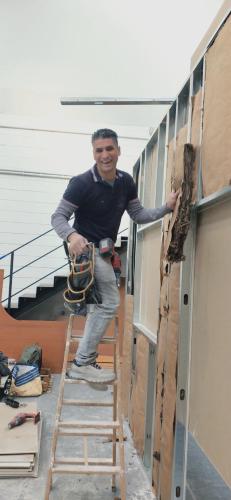 Necesitamos cambiar un separador por un tabique de pladur y colocar cristalera/ventanal de 90x130 cm. Longitud total de tabique 130 - 140 cm ancho 2,35m alto. Cristalera compraremos nosotros. Trabajo en piso nuevo sin muebles, segunda planta con ascensor.