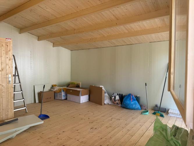 Nos gustaría hacer una habitación en el garaje, ya que el garaje tiene actualmente 9.30m de largo (desde la puerta de entrada de los coches hasta la pared). Nos gustaría dejar una parte lo suficiente grande para que entren los coches sin problemas, por lo que a priori habíamos pensado hacer la habitación dónde está la puerta de acceso a la vivienda aprovechando que también hay una pared del...