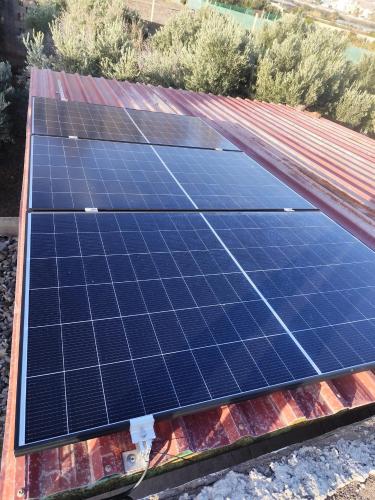 Finca con bastante pendiente. Tiene frutales y parra de kiwis. El prado es de hierba . Hay dos perros, lo que hacen es jugar y hay que tener cuidado de que no se escapen, pues no hacen caso a los que no conocen
