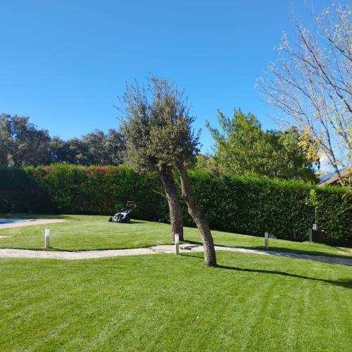 Solo necesito mantenimiento, césped artificial. Los árboles y arbustos y arizonica hay que posarlos cuando sea necesario y limpiar las hojas que caen por qué los árboles tiran hojas. Hay que poner y quitar la lona de la piscina ( el mantenimiento la hacemos nosotros). Solo un día a la semana nos da igual hora y qué día sea. Seriedad y formalidad es lo único que necesitamos.