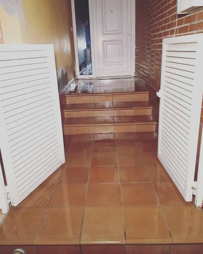 El edificio cuenta con 4 plantas y en cada uno los cuartos de baño están llenos de moo y mucha humedad la parte del tendedero hay mucho goteo de agua.