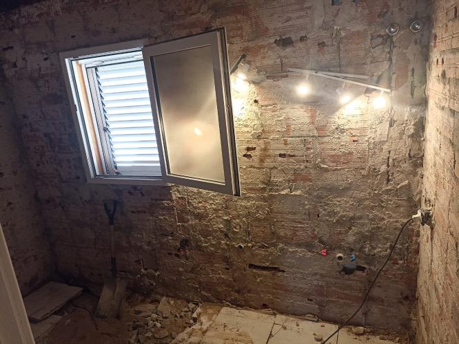 Se tiene que hacer una bajante de tuberías para hacer un baño de minusválidos en la planta baja.