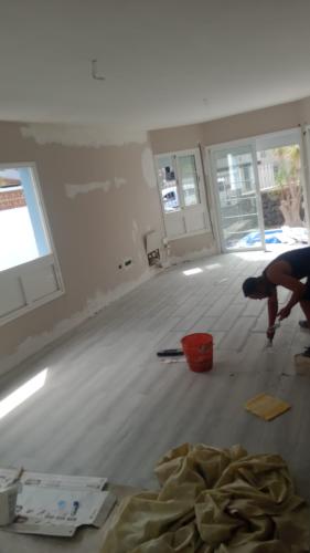 Necesito poner tres lámparas de techo, colgar dos tv, poner un cenefa en techo de salón y dormitorio. Poner dos suelos pequeños con vinilos de cocina y baño. Pintar y lijar 3 ventanas de madera tamaño 1× 1 metro. Y por último acabar de pintar azulejos de cocina está a medias.