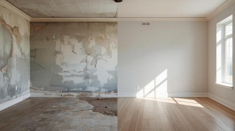 Se trata de reparar con cemento un trozo de pared en planta baja que está debajo de un balcón y de poner un trozo de moldura de escayola que se ha caído en el pasillo de la vivienda