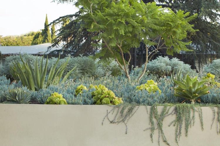Jardín en un ático a 300 m de distancia del mar. Zona de mucho sol en verano, y puede hacer viento (tramuntana). Los muros del ático son de 1,5 m. La superficie del ático es de 75 m2, pero lo que quiero es poner macetas y jardineras. Según presupuesto, podríamos poner riego automático. Gracias