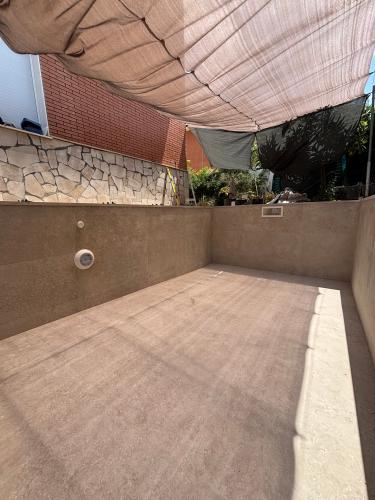 Piscina pequeña sin depuradora, se pintaron los azulejos con pintura i está saltando echo que ensucia el agua. Se tendría que quitar toda la pintura restante.