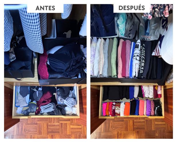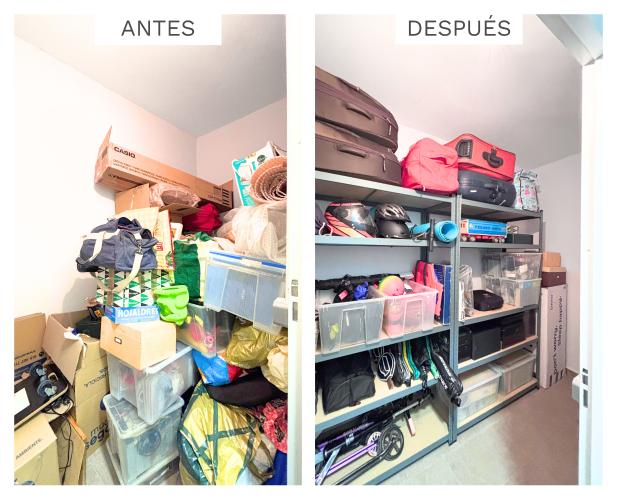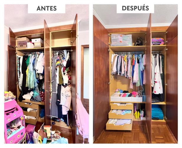 Tengo dos habitaciones con los armarios en completo caos, el piso en general está desordenado, ya que mi marido y yo trabajamos largas horas por lo que se ha acumulado y no nos da tiempo, nos agobia mucho y ni sabemos donde empezar