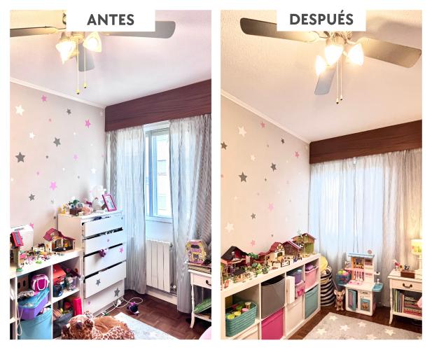 Hola!, tengo una habitación que antes era un despacho convertida prácticamente en un trastero-Cuarto de plancha-Sala de la elíptica de mi marido. Me gustaría: despejarla de todo lo que no usamos y reubicar lo que necesitemos guardar. Convertirla después en una habitación de estudio para mi hija, peque, ya que ahora los hacen juntas en otra habitación y están bastante agobiadas.