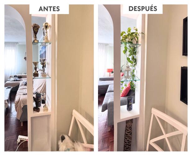 Es la zona de más uso y la caja de pandora. Vamos dejando todo ahí los niños y yo. Trabajo en casa y ese es mi terreno, estudio, trabajo... Y tengo muy poco tiempo. Si añadimos mi problema de apego, soy incapaz, de tirar nada, pues la fórmula perfecta para tener un desastre. Además es la entrada a la casa por lo que lo veo sí o sí, al igual que cualquier persona que venga.