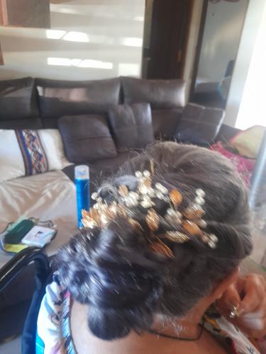Necesito un servicio de peluqueria , seria para un recogido para una boda por la mañana , tengo el pelo largo y tambien quisiera saber el precio de maquillar si lo tuviera disponible , gracias