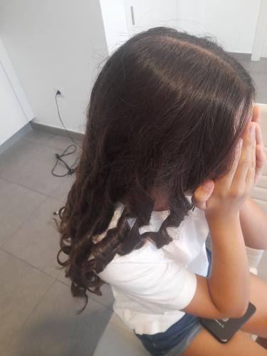 La comunión de mi hija es a las 12, por lo que a las 8 empezaríamos a peinar. A ella le ondulamos pelo con tenacillas y le ponen s adorno ya sea coronita o horquillas. A la mamá peinado con secador y maquillaje