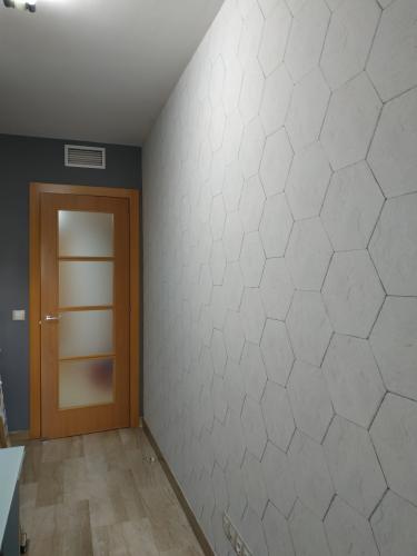 Hola buenas, la subida de las escaleras al piso de arriba, tiene gotele, es la parte de la entrada. Solo es quitar el gotelé. Porque quiero poner papel pintado.