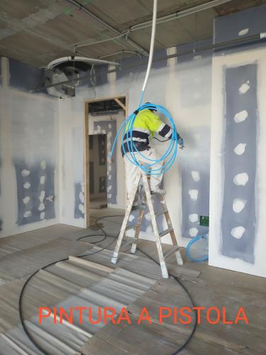 Es un local de 350m2, hay que pintar paredes y techo la pared tiene unos 3m de altura. Actualmente en la pared hay papel, habría que quitar papel y pintar después