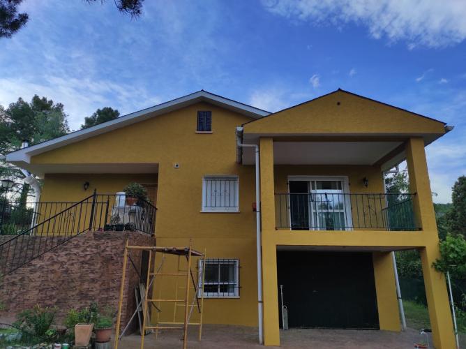 Pintores profesionales para pintar paredes exteriores, fachada en vivienda unifamiliar