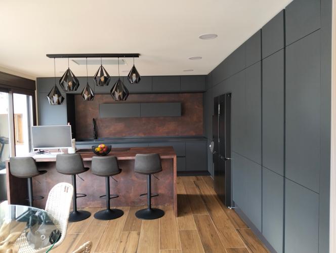 Ya hay una capa de pintura negra encima y una capa extra contra la humedad porque es un baño pero hay muchas rayas y está sin terminar