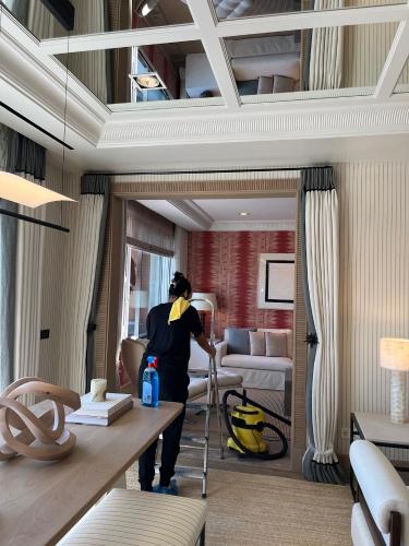 Casa de 135 m2 (2 plantas - 3 habitaciones, 2 baños y pequeño jardin). Tareas: limpieza integral del domicilio (cuidado 3 veces en semana). Profundo y mantenimiento del hogar. Plancha: principalmente camisas (por mi trabajo) y otros (necesidad de planchado muy profesional).