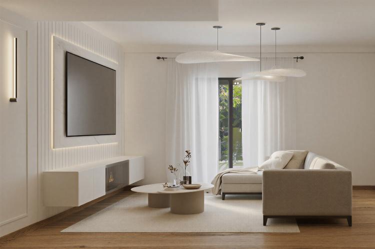 Los metros totales de vivienda serian alrededor de 150m2 cada planta, seria una planta principal y arriba una especie de buhardilla quizás con una habitación. Aparte iría una planta baja que seria únicamente garaje. Estilo moderno.