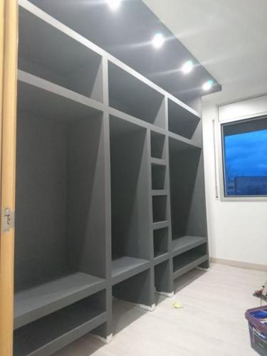 Me gustaría hacer dos armarios a medida en la habitación principal. Con la diferencia de uno con unos 10 cm menos de ancho porque no hay más hueco. Sería uno de 1'40 de ancho por 2'50 de alto por uno 50/60 de hondo y el otro igual pero sería 1'30 de ancho, ambos con 4 cajones abajo fuera de lo que es el armario y encima de ellos las puertas correderas.